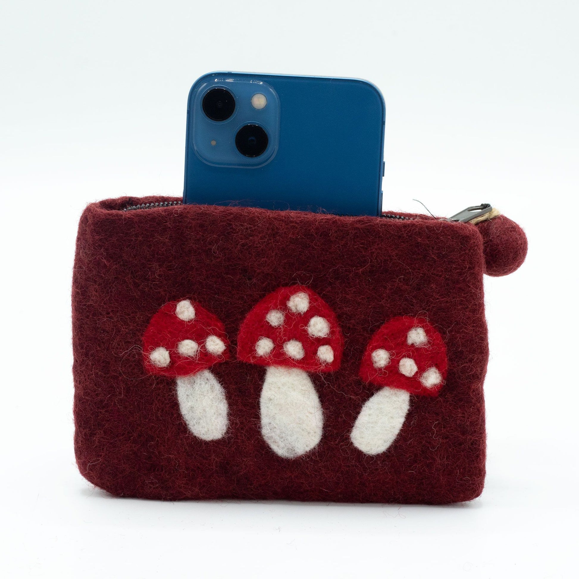 Natural Felt Zipper Pouch - Wild Mushrooms